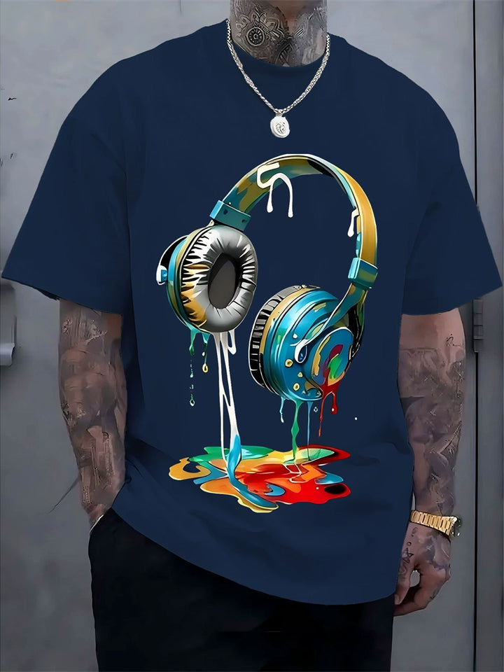 Men's Headphone Graphic Print Casual Short Sleeve T-Shirts