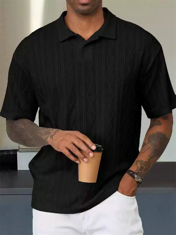 Men's Summer Retro Diamond Weave Textured Short Sleeve Polo Shirts