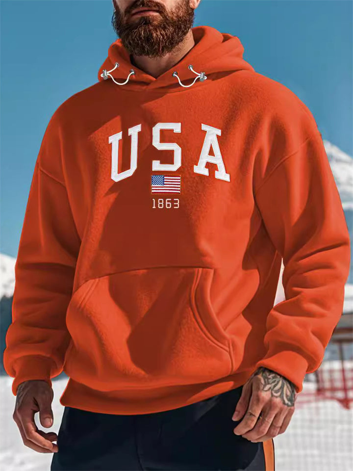 Men's Trendy American Style Fleece Kangaroo Pocket Hooded Sweatshirts