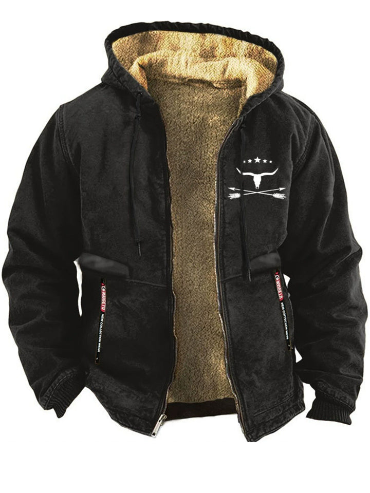 Men's Winter Simple Printed Long Sleeve Hooded Fleece Coats