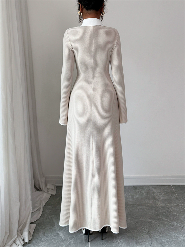 Spring Autumn Long Sleeve Casual Office Women's Knitted V Neck Maxi Dress