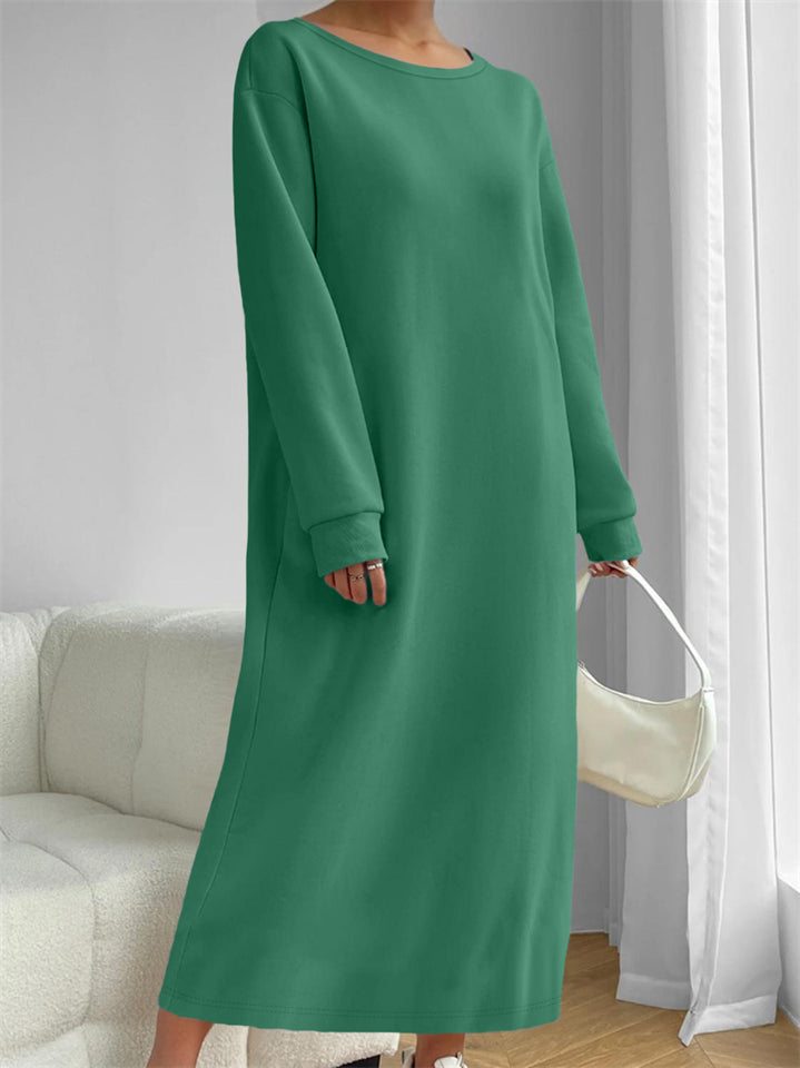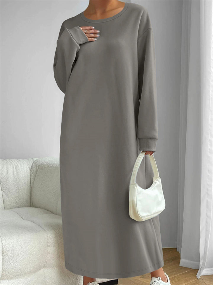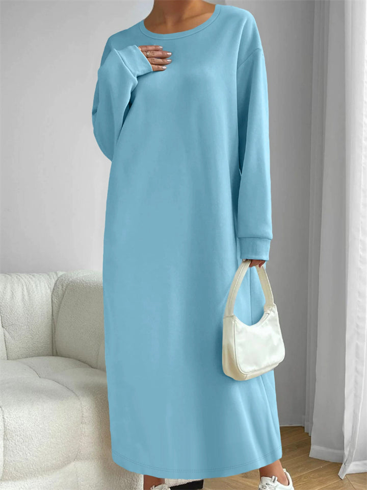 Women's Autumn Solid Color Simple Round Neck Long Sweatshirts Dress