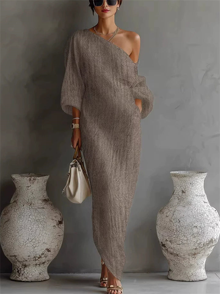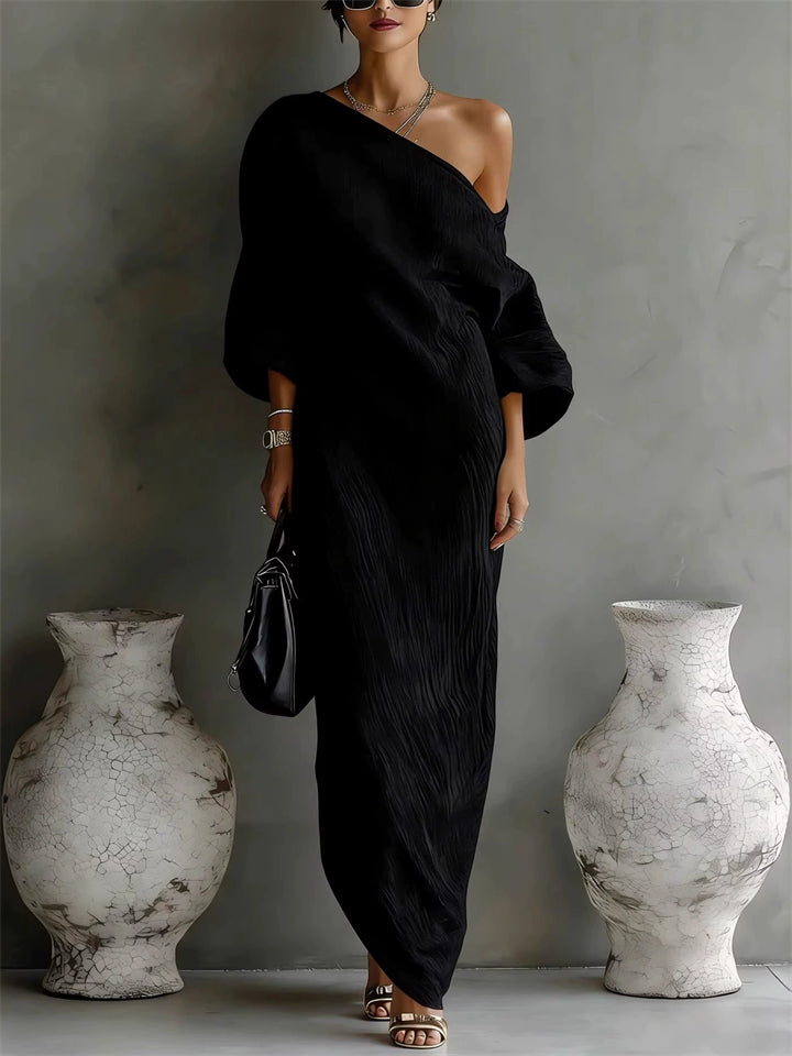 Women's Chic Elegant Off Shoulder Maxi Dress with Bubble Sleeve