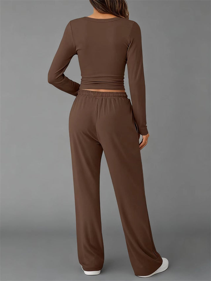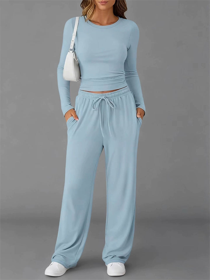 Women's Comfy Sporty Autumn Round Neck Long Sleeve Top and Drawstring Pants Set