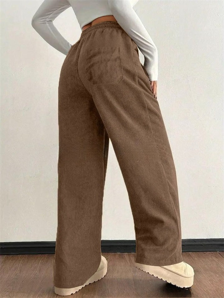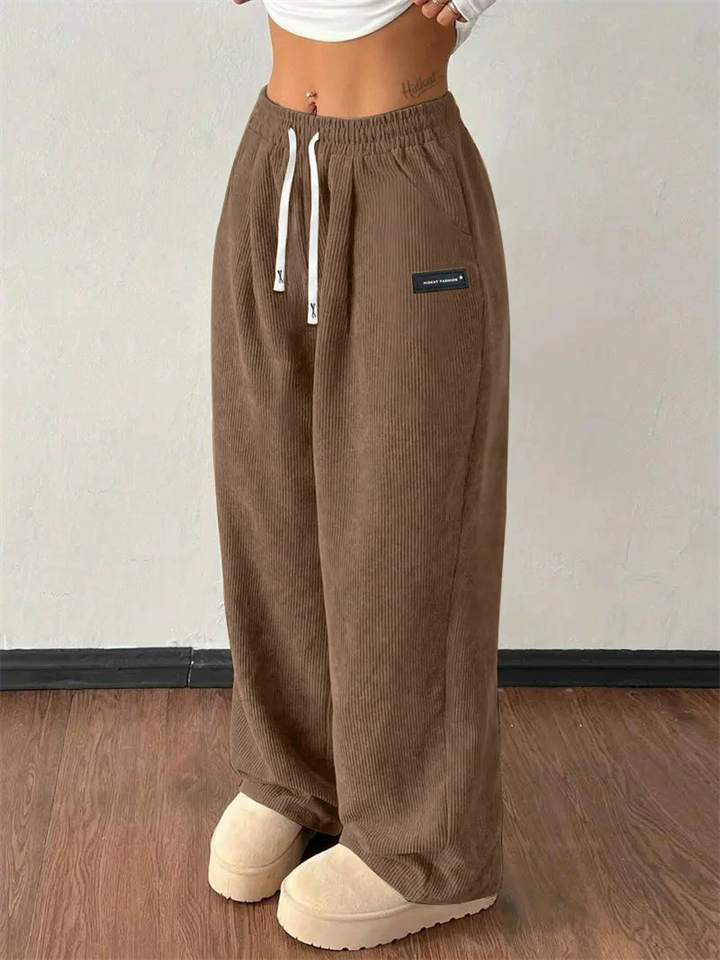 Women's Elastic Waist Drawstring Wide Leg Corduroy Pants With Patch