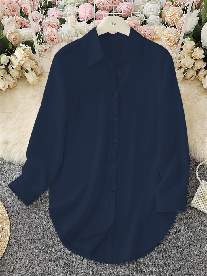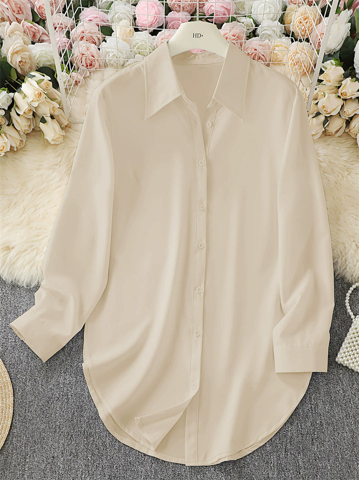 Women's Plain Button Up Curved Hem Short Sleeve Blouses