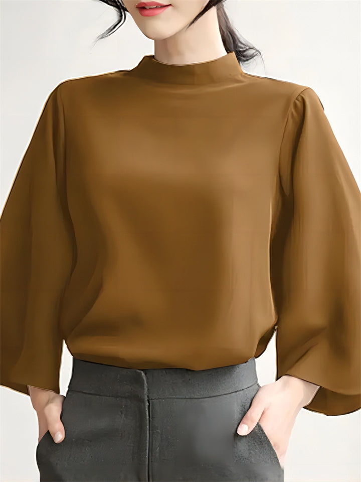 Women's Silk Like Stand Collar Loose Batwing Sleeve Elegant Blouse