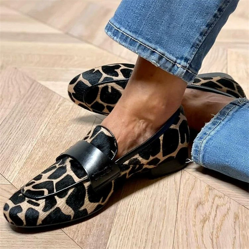 Women's Spring Faux Suede Walter Print Round Toe Flat Loafers