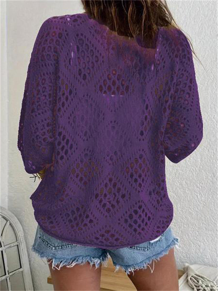 Women's Summer Boho Crochet Hollow Out V Neck Knit Beach Top