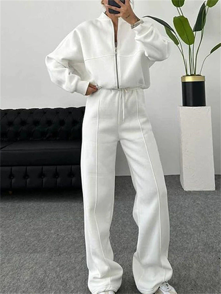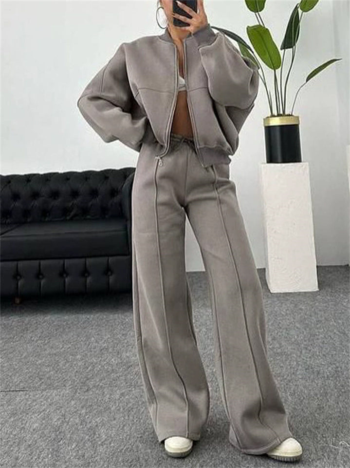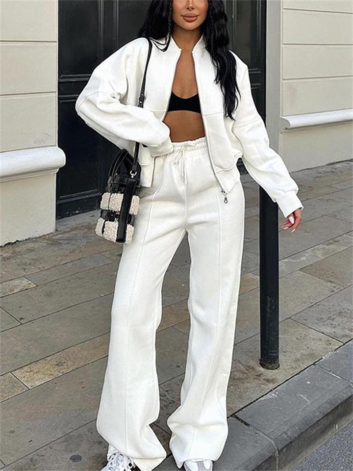 Women's Trendy Solid Color Cardigan Baseball Collar Sweatshirts & Sweatpants Outfit